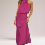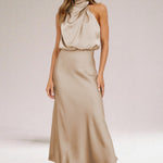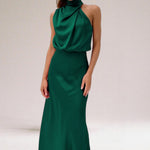 • Σχεδιασμός: Μακρύ σατέν φόρεμα με λαιμόκοψη halter