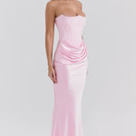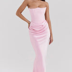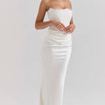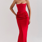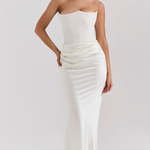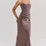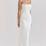 Ανακαλύψτε τον τέλειο συνδυασμό μοντέρνας κομψότητας και θηλυκότητας με το βραδινό μας φόρεμα. Ο δομημένος κορσές χωρίς τιράντες αναδεικνύει το ντεκολτέ σας, ενώ το πλαϊνό ντραπέ σμιλεύει διακριτικά τη σιλουέτα σας.