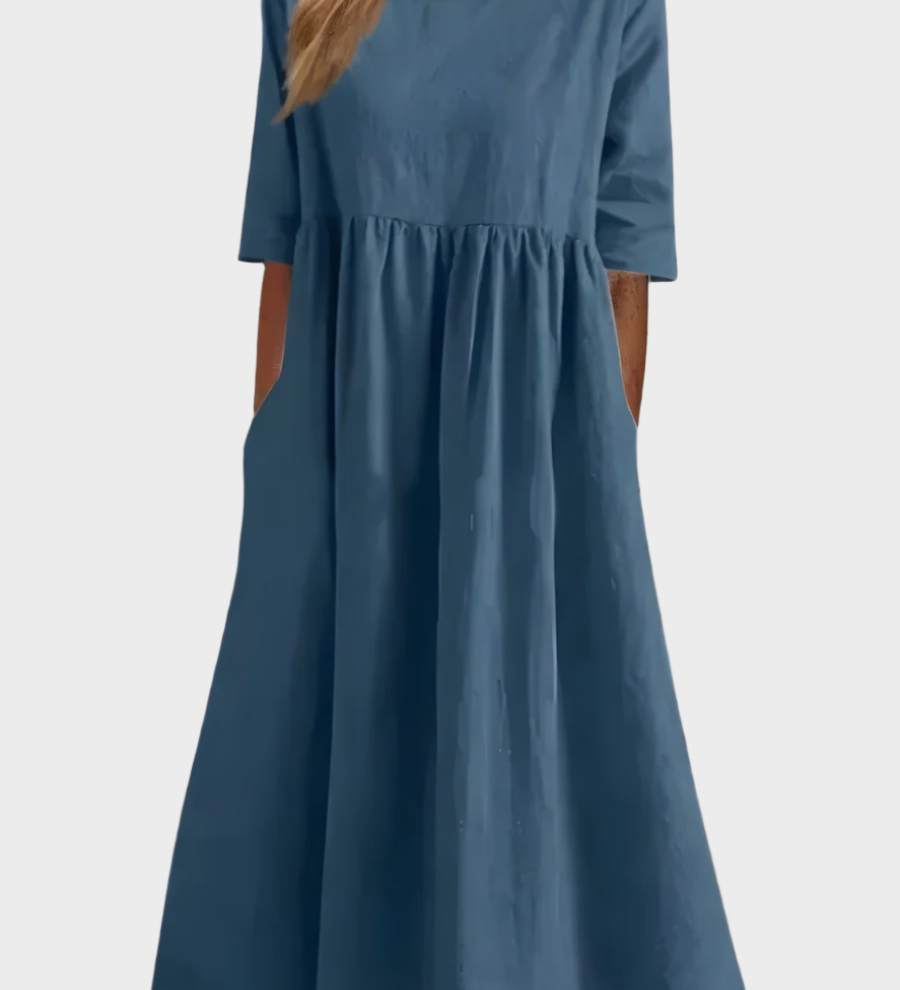 Λινό Φόρεμα με Κοντό Μανίκι και Αέρινη Γραμμή