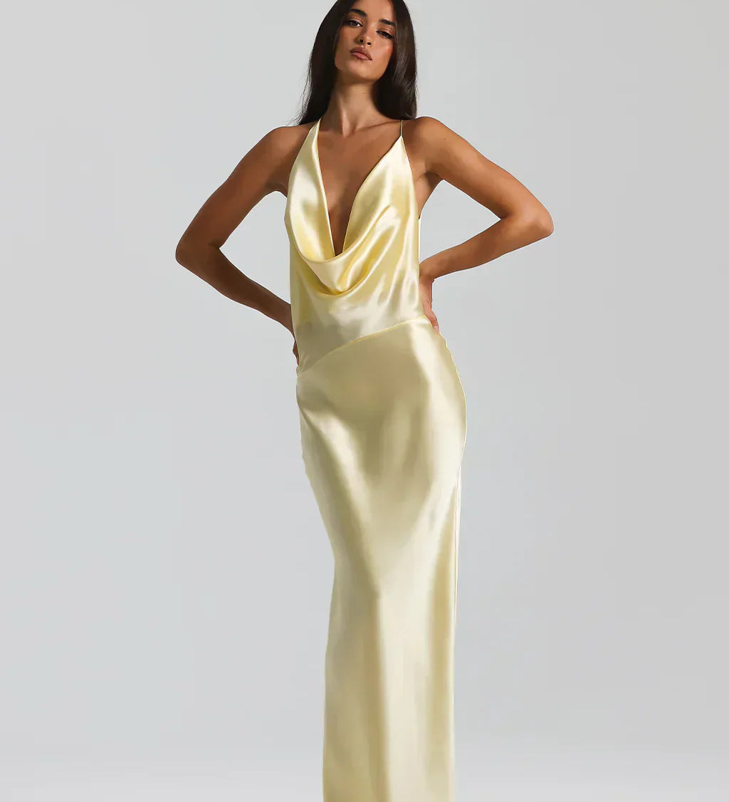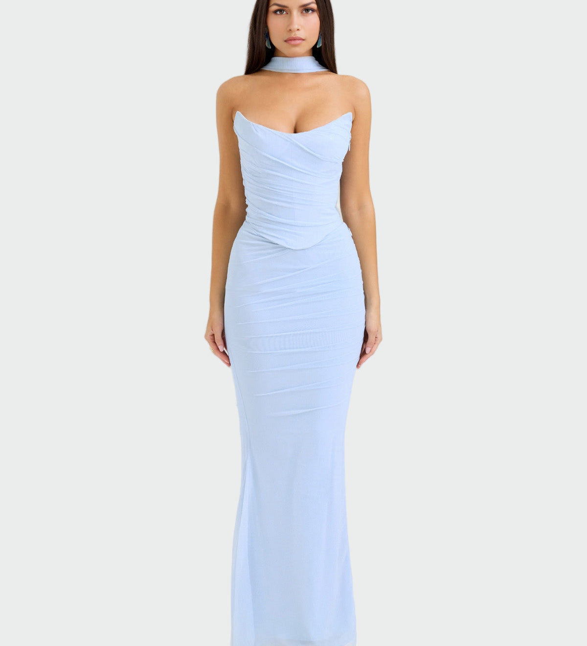 Λόρα | Μακρύ Ντραπαριστό Φόρεμα με Κολιέ-Κόρσαζ