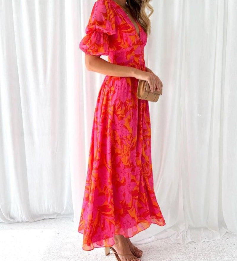 Derana | Κόκκινο-ροζ μάξι φόρεμα