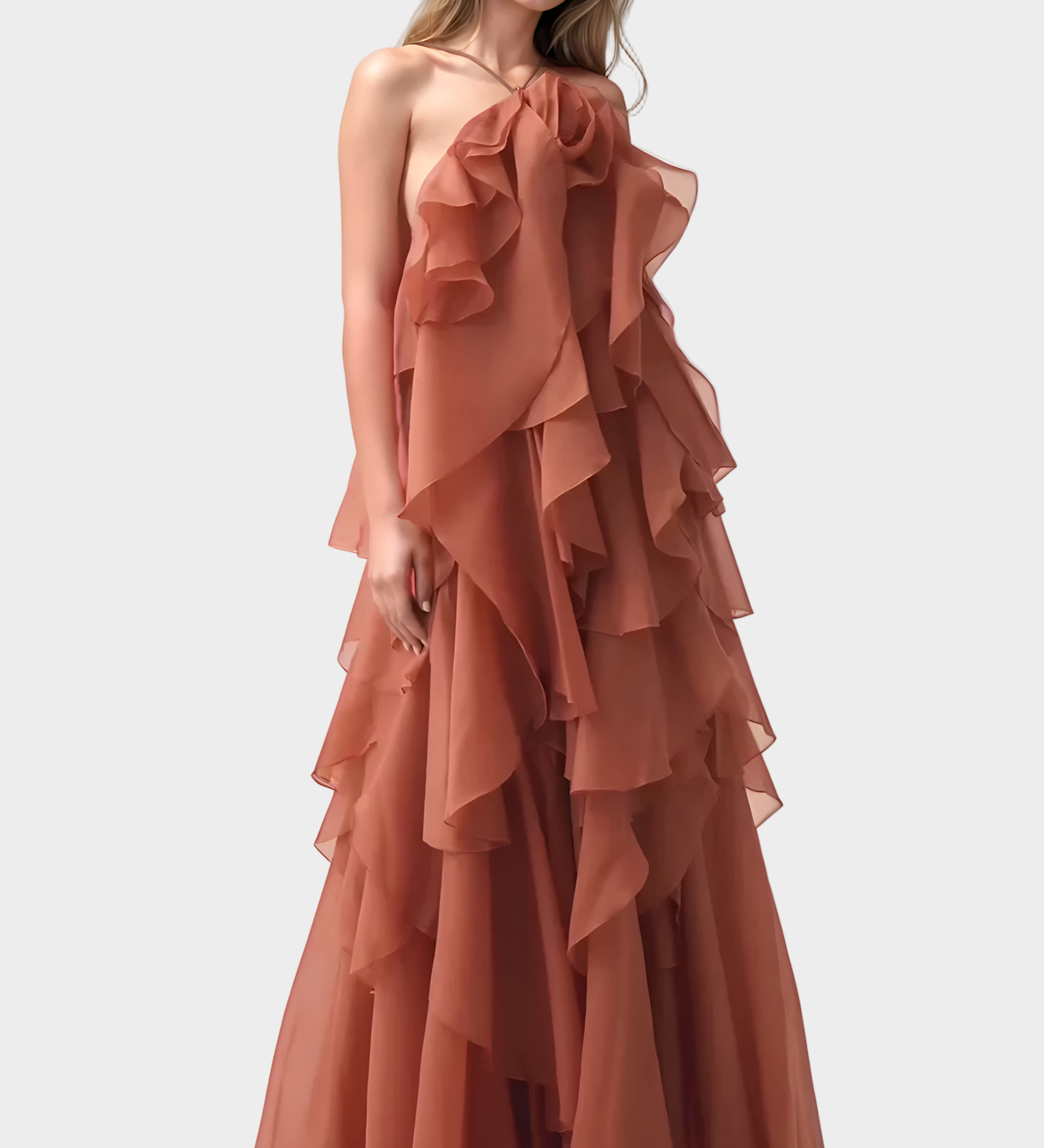 Μάξι Φόρεμα με Ρυθμισμένα Βολάν