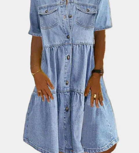 Μπλούζα τζιν με μακριά μανίκια και κλασικό γιακά