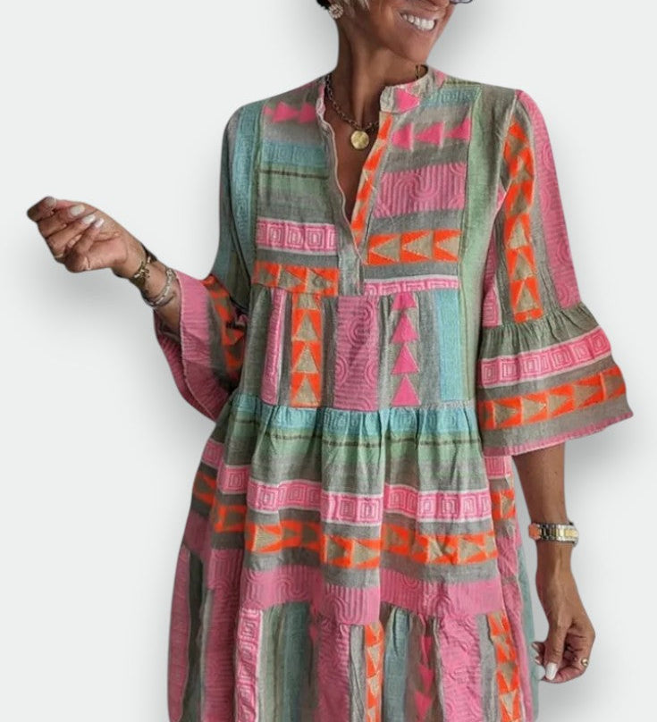 Juliane | Φόρεμα σε στυλ μποέμ με βολάν και ντεκολτέ