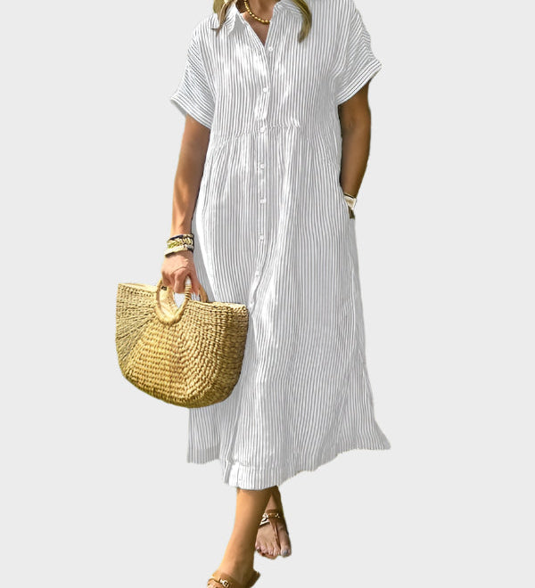 Ριγέ Πουκάμισο Φόρεμα με Πτερύγια, Κουμπιά και Λειτουργικές Τσέπες