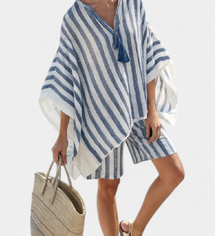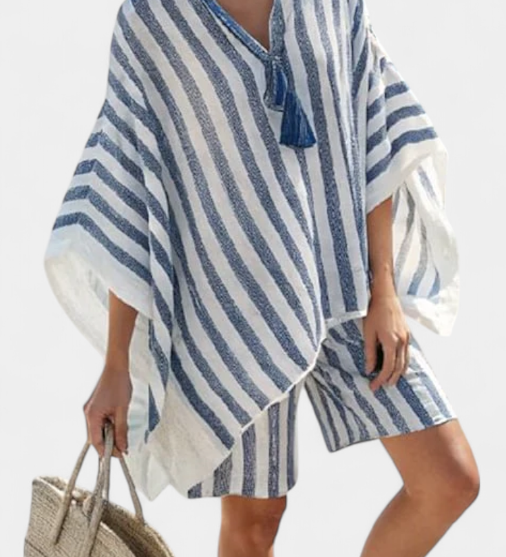 Σετ ριγέ Nancy με μπλούζα oversized και κομψά σορτς
