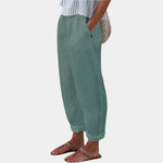 Ανανεώστε την καλοκαιρινή σας εμφάνιση με αυτό το λινό παντελόνι σε χαλαρή γραμμή. Ιδανικό για καθημερινές στιγμές ανεμελιάς και άνεσης.