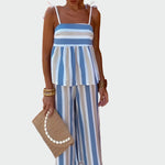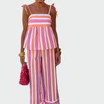 Αναδείξτε το καλοκαιρινό σας στυλ με αυτό το δροσερό σετ που συνδυάζει άνεση και φινέτσα. Ο αέρινος σχεδιασμός του προσφέρει ελευθερία κινήσεων, ενώ οι φωτεινές αποχρώσεις το καθιστούν ιδανικό για τις ζεστές ημέρες.