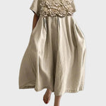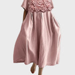 Αναδείξτε τη φυσική σας κομψότητα με αυτό το midi φόρεμα σε μπεζ απόχρωση, διακοσμημένο με εντυπωσιακά 3D λουλούδια στο επάνω μέρος. Η χαλαρή του γραμμή προσφέρει άνεση, ενώ οι λεπτομέρειες με πιέτες δημιουργούν μια αέρινη και θηλυκή σιλουέτα. Ιδανικό για καθημερινές αλλά και πιο ξεχωριστές εμφανίσεις.