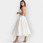 Απλό και φίνο, αυτό το φόρεμα αποπνέει διαχρονική κομψότητα και ανεπιτήδευτη θηλυκότητα. Η ρευστή του γραμμή αγκαλιάζει το σώμα με χάρη, προσφέροντας άνεση και στυλ σε κάθε περίσταση.