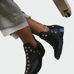 Μποτάκια με εντυπωσιακό σχέδιο από μεταλλικά τρουκ που χαρίζουν δυναμικό χαρακτήρα και ξεχωριστό στυλ. Το κομψό τους κόψιμο και η άνετη εφαρμογή τα καθιστούν ιδανικά για καθημερινή χρήση αλλά και για πιο τολμηρές εμφανίσεις. Συνδυάζονται εύκολα με τζιν, φορέματα ή παντελόνια για να δημιουργήσετε μοναδικά looks.