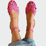 Γυναικεία πέδιλα με κομψό σχέδιο που αναδεικνύει τη θηλυκότητα και προσφέρει άνεση σε κάθε βήμα. Οι λεπτομέρειες στο επάνω μέρος προσδίδουν ιδιαίτερο χαρακτήρα, ενώ ο λεπτός ιμάντας στον αστράγαλο εξασφαλίζει σταθερή εφαρμογή. Ιδανική επιλογή για βραδινές εμφανίσεις, εκδηλώσεις και κομψές εξόδους.