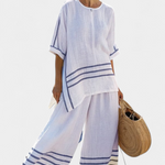 Η σαλοπέτα Daisy προσφέρει την τέλεια ισορροπία μεταξύ άνεσης και μεσογειακού στυλ. Κατασκευασμένη από ένα ελαφρύ μείγμα βαμβακιού και λινών, η φαρδιά σιλουέτα της με διακριτές ανοιχτές φάσεις και διακοσμητικές ρίγες αποπνέει μια αβίαστη φρεσκάδα.