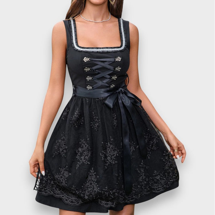 Εμπνευσμένο από τον βαυαρικό σχεδιασμό, αυτό το φόρεμα προσφέρει μια κλασική εμφάνιση που τιμά την πολιτιστική κληρονομιά.