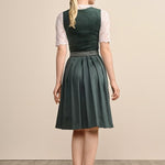 Εισέλθετε στον μαγευτικό κόσμο της βαυαρικής παράδοσης με αυτό το κλασικό φόρεμα Dirndl. Κατασκευασμένο σε πλούσιο σκούρο πράσινο, αυτό το φόρεμα διαθέτει έναν σφιχτό κορσέ και μια φαρδιά πλισέ φούστα, συμπληρωμένο από μια γυαλιστερή σατέν ποδιά με διακοσμητικό κλείσιμο. Ιδανικό για το Oktoberfest και άλλες πολιτιστικές περιστάσεις, υπόσχεται να αναδείξει τη θηλυκή σας σιλουέτα προσφέροντας άνεση και στυλ.