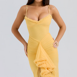 Το βολάν στο στρίφωμα προσθέτει μια δυναμική πινελιά, καθιστώντας το την ιδανική επιλογή για ειδικές περιστάσεις , βραδινές εκδηλώσεις ή για να είστε το κέντρο της προσοχής.