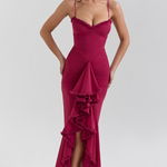 • Ψηλό σκίσιμο με βολάν στο τελείωμα: Δημιουργεί κίνηση και ένταση, προσφέροντας μια εκπληκτική σιλουέτα.