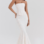 Αυτό το φόρεμα αποπνέει κλασικό ρομαντισμό χάρη στο φλοράλ κέντημα , τον διαμορφωμένο κορσέ και την κολακευτική σιλουέτα του. Η ιβουάρ απόχρωση και το απαλά φαρδύ στρίφωμα το καθιστούν την ιδανική επιλογή για γάμους, δεξιώσεις και γιορτές με λευκό θέμα.