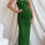 • Σχεδιασμός: Μάξι μήκος με κομψό ντεκολτέ και πιθανή λεπτομέρεια στη μέση.
